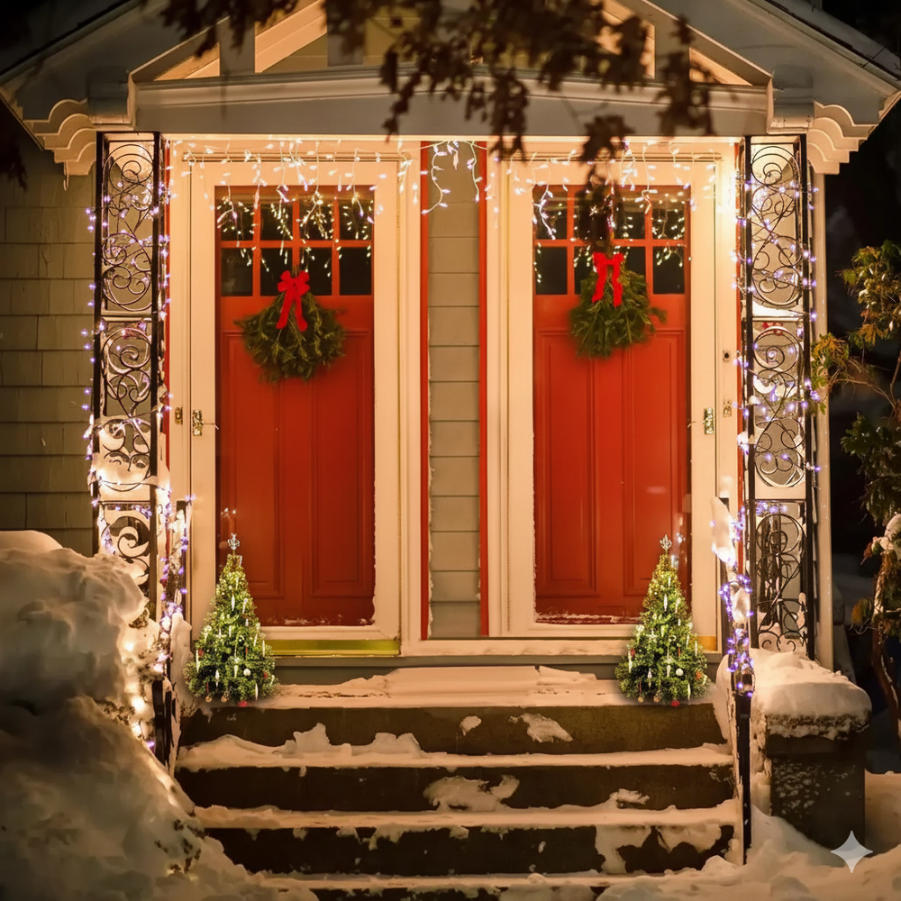 Escalera con luces led para decoración navideña con Papá Noel trepador